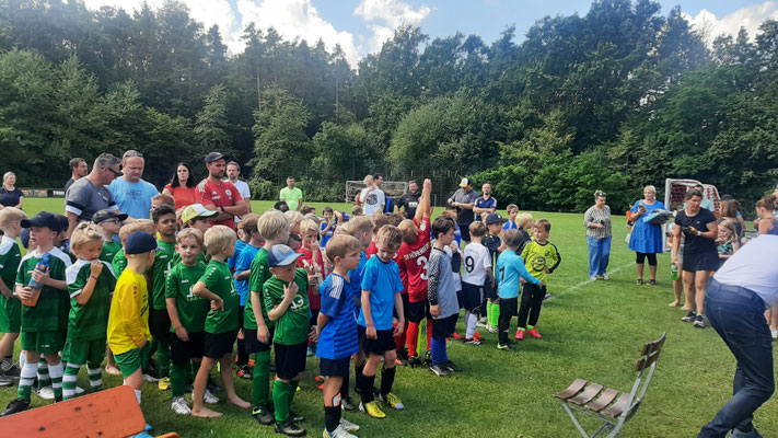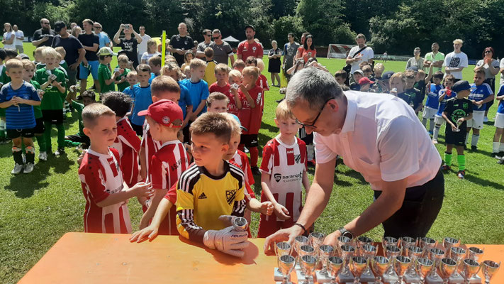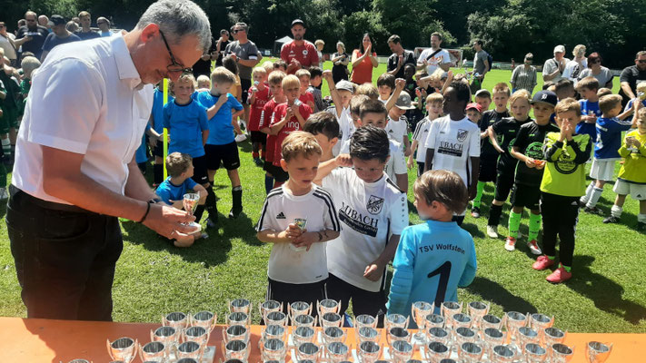 Die Vorstandschef des TSV Wolfstein begrüßte Stefan Wittmann ganz herzlich und begleitete ihn durch den sonnigen Nachmittag, der in der Überreichung der Pokale an alle teilnehmenden Fußballerinnen und Fußballer seinen krönenden Abschluss fand.