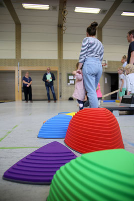 Als wir zum Pressetermin in der Turnhalle des TSV Berching ankamen, gab es viel Gewusel und leuchtende Augen. Kinder, die sich eifrig daran machten zu klettern, zu balancieren, an Seilen durch die Luft zu schwingen oder sich einfach von Mama auf einem Gefährt mit Rollen durch die Turnhalle ziehen zu lassen. Petra Merkert, TSV-Vorsitzende aus Berching, begrüßte uns herzlich und stellte uns die Leiterinnen der Turnzwerge (eine Gruppe ist für Kinder bis 3 1/2 Jahren und die zweite Gruppe für die "Großen" ab 3 1/2 Jahren) vor. Jede Woche treffen sich die beiden Gruppen mit insgesamt ca. 30 aktiven Kindern und Britta Bauer, Laura Amon, Karina Anna Schneider sowie Jana + Lars Brieter kümmern sich liebevoll um die jungen Nachwuchssportler. Unser Vorstand Stefan Wittmann berichtete von den sozialen Projekten in der Jugend- und Seniorenarbeit, die die Fuchs-Stiftung bereits im Landkreis Neumarkt unterstützt hat und betonte, dass für Kinder und Jugendliche Bewegung, Sport - wie das kreative Turnen beim TSV 02 Berching so wichtig und wertvoll ist.